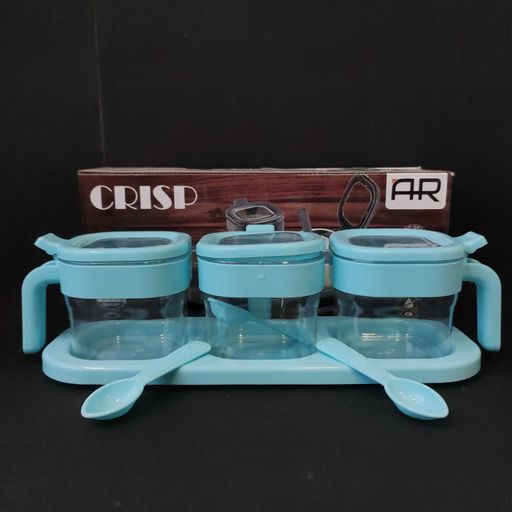 This set features three spice storage jars designed for organized and convenient use on your dining table. Each jar comes with a matching spoon for easy dispensing, all neatly placed on a tray to keep your spices accessible and your table tidy. Crafted for everyday use, this set helps maintain freshness while enhancing your dining experience with practical elegance.