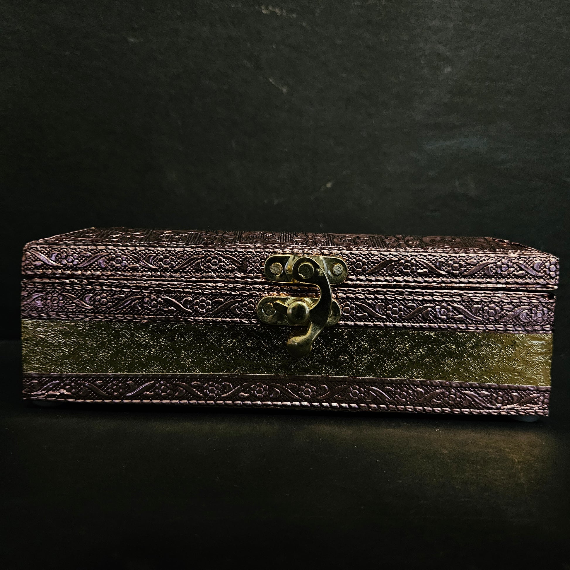Expertly crafted with oxidised wood, this handcrafted jewellery box is the perfect gift for any special occasion such as a marriage, anniversary, or engagement. Its unique design and durability make it an ideal choice for storing and protecting your most precious accessories. Add a touch of elegance to your gift-giving with this one-of-a-kind oxidised wooden box.