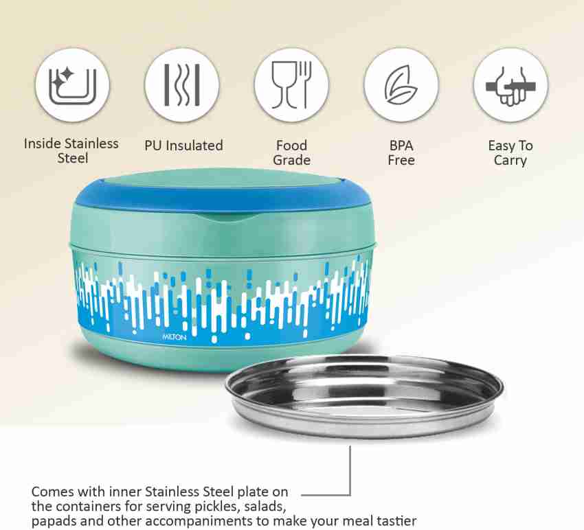 MILTON New Small Bite Insulated Inner Stainless Steel Tiffin Box, 590 ml, Aqua Green 1 Containers Lunch Box Thermoware Insulated Tiffin Box