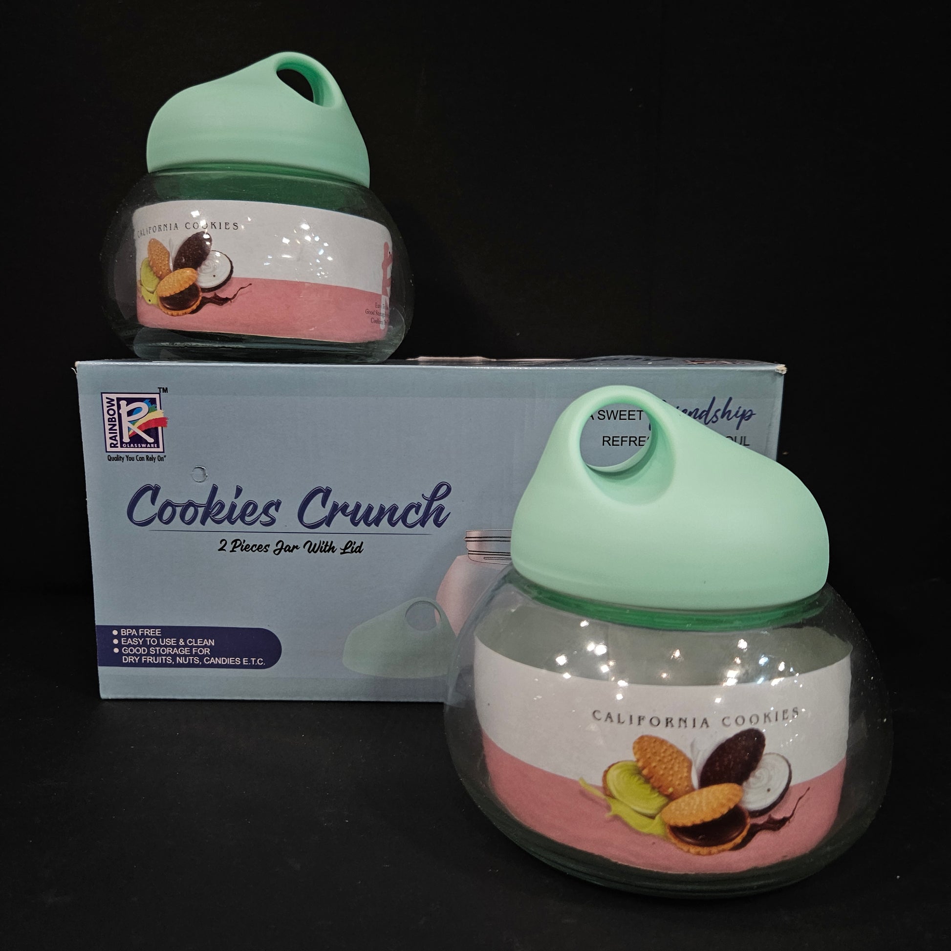 Rainbow Glassware quality you can rely on cookies crunch 2 pieces jar with lid set perfect for Return gifting