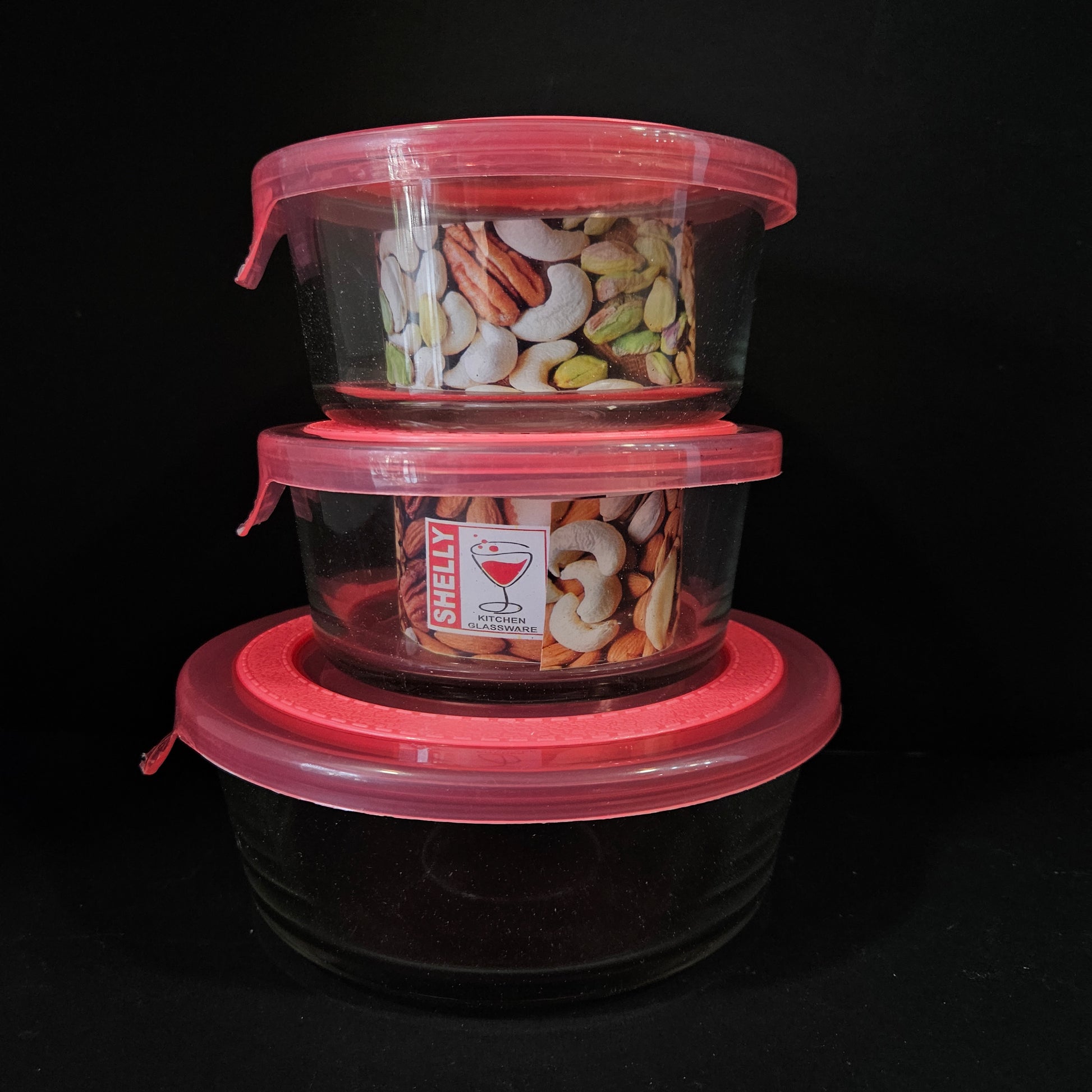 The Shelly Glassware Home Glaze set includes two small bowls and one large bowl, all with lids. Ideal for gifting, the elegant design and glaze finish will add a touch of sophistication to any home. Made with high-quality glass, these bowls are durable and perfect for everyday use.