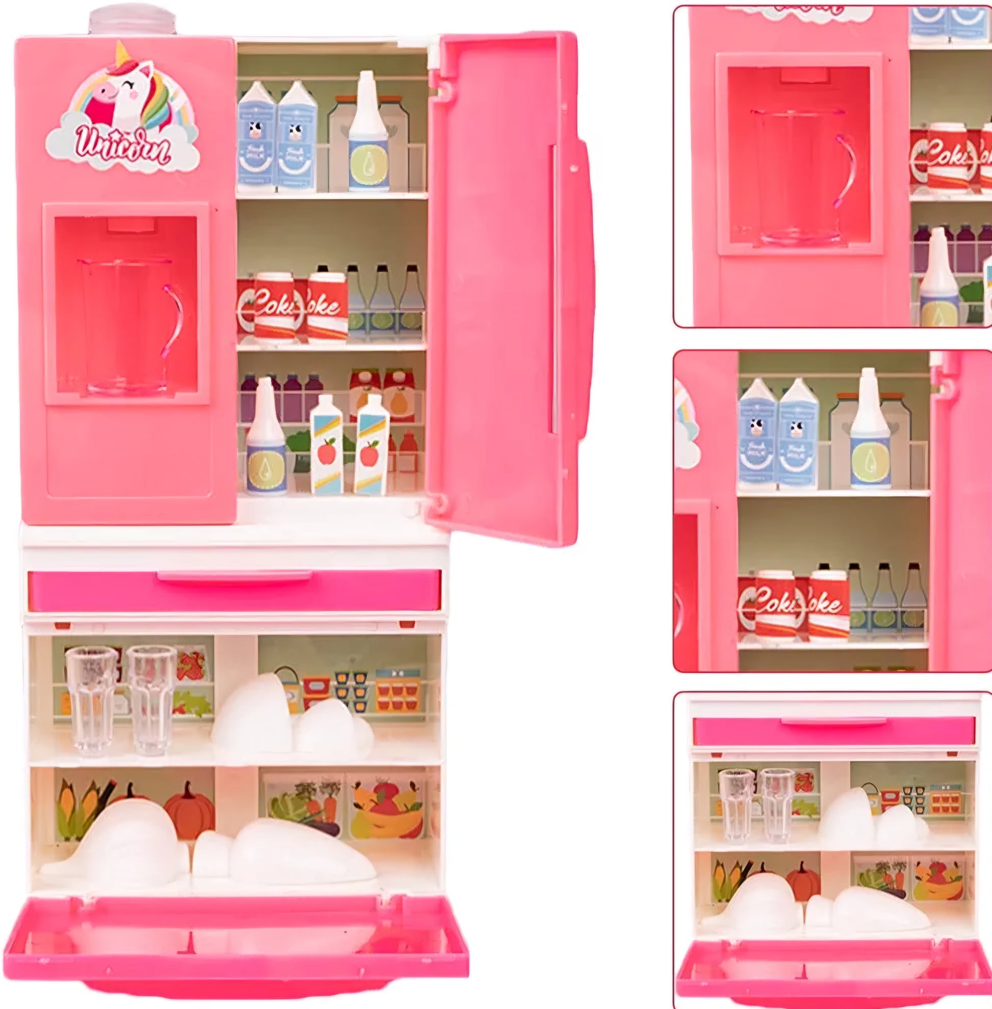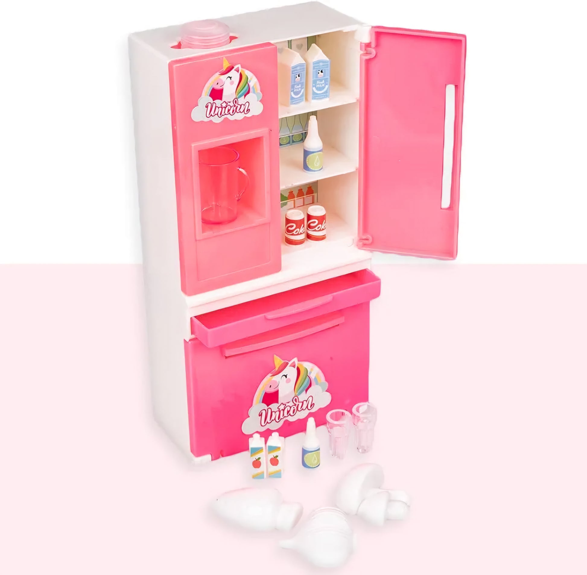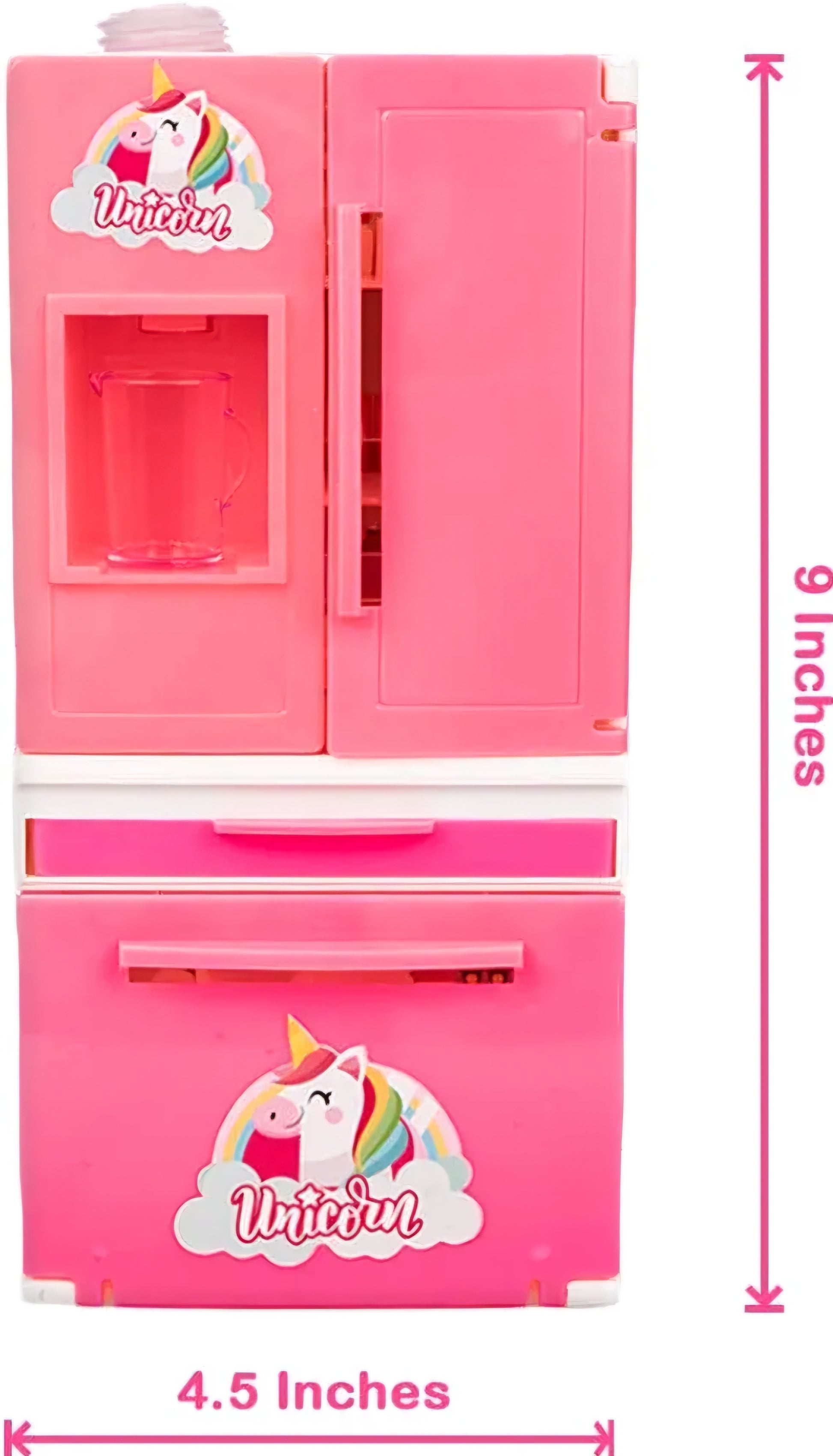 Unicorn Edition Double Door Miniature Role Play Refrigerator with Working Water Dispenser