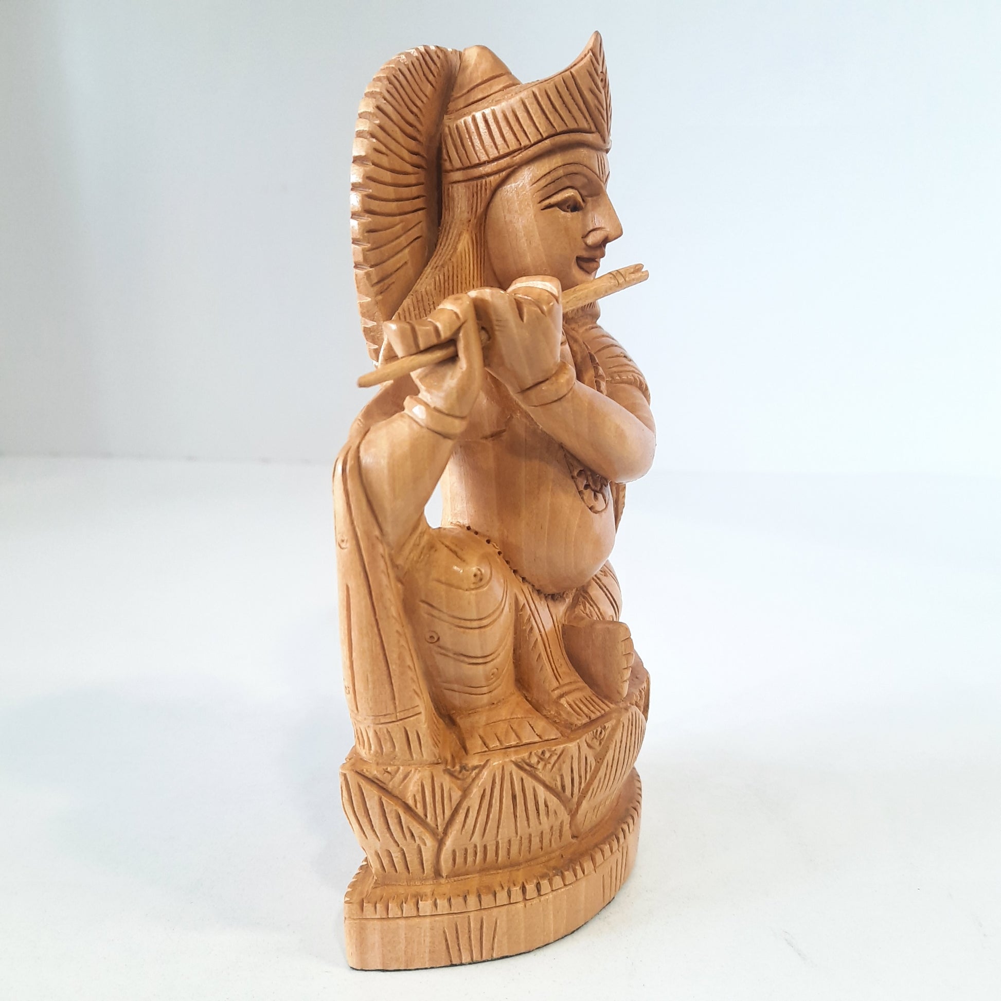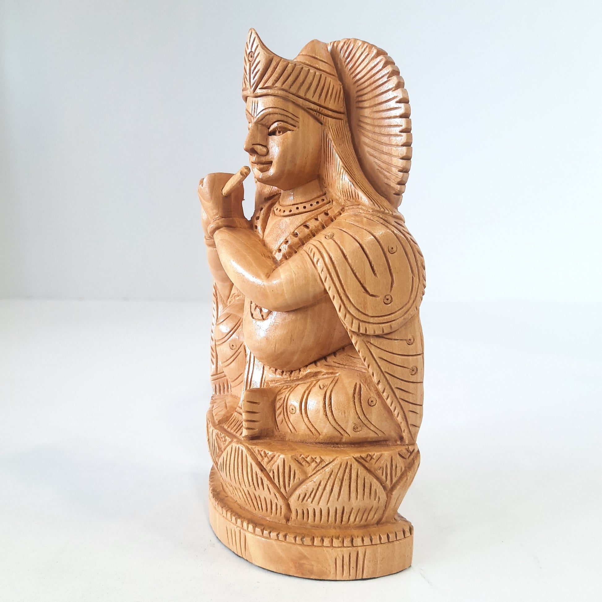 Wooden Krishna Figure Sitting Super Fine